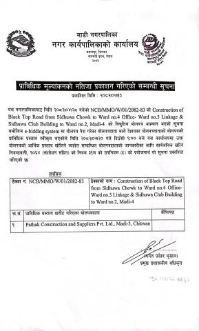 दौजर पुलको दक्षिण तर्फ केसी टोल सडकमा कालोपत्रे सडक निर्माण सम्बन्धी विद्यूतिय बोलपत्र आव्हानको सूचना