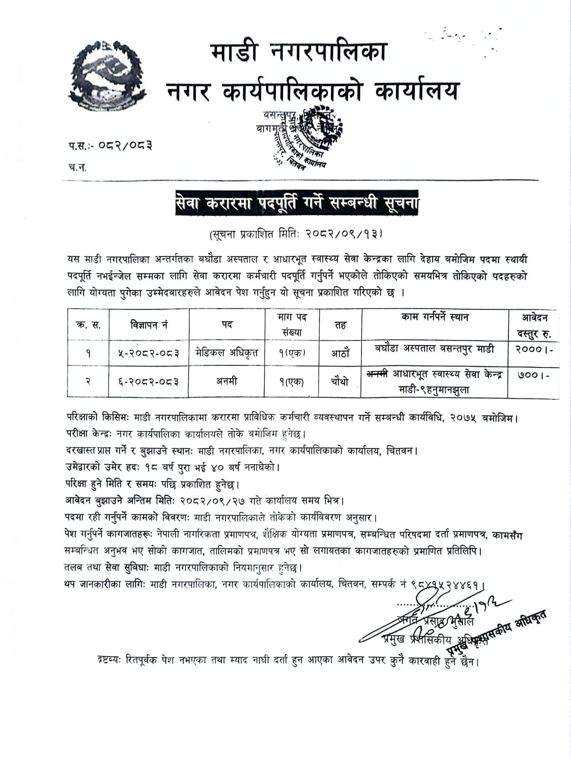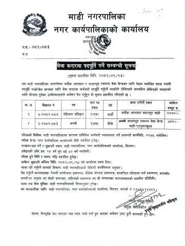 सेवा करारमा पदपूर्ति गर्ने सम्बन्धी सूचना ।