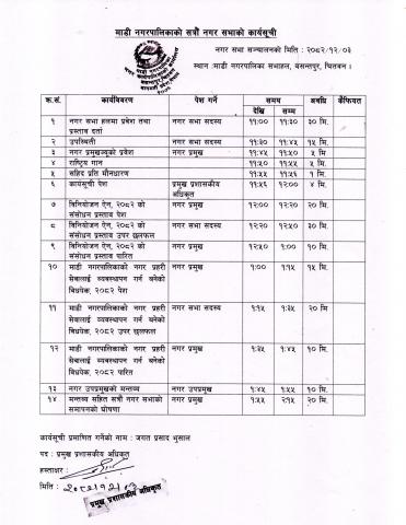 माडी नगरपालिकाको सत्रौं नगर सभाको कार्यसूची सम्बन्धमा ।
