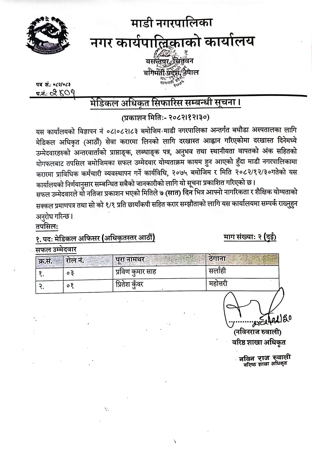 मूल्यसूचि माग सम्बन्धि सूचना दोस्रो पटक प्रकाशित सूचना
