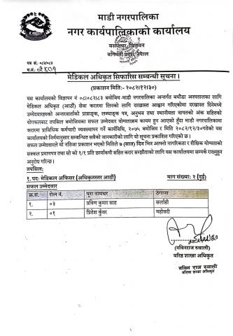 मेडिकल अधिकृत सिफारिस सम्बन्धी सूचना