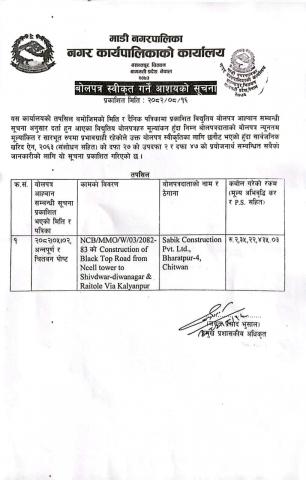 बोलपत्र स्विकृत गर्ने आसयको सूचना ।