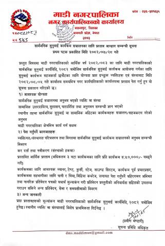सार्वजनिक सुनुवाई कार्यक्रम सञ्चालनका लागि प्रस्ताव आव्हान सम्बन्धी सूचना