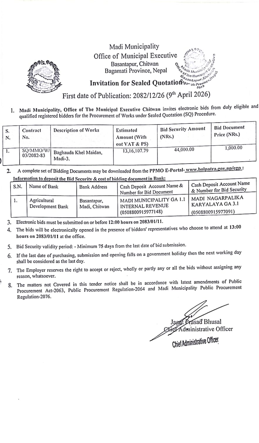 » बघौडा खेल मैदान सम्बन्धी शिलबन्दी दरभाउ आव्हान सम्बन्धी सूचना